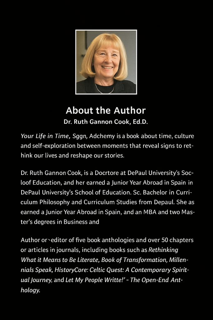 Meet Dr. Ruth Gannon Cook, a warm-hearted New Orleans native whose French, Spanish, and Caribbean roots run deep, passed down through four generations of storytelling and soul. With a doctorate from the University of Houston and a certificate from Queens College, Cambridge, she’s a beloved Emerita professor from DePaul University, sharing her love for signs and symbols with the world. Her book, Your Life in Time, Signs, and Alchemy, is like a heartfelt conversation, inviting you to wander through memories, myths, and the magic of your own growth.